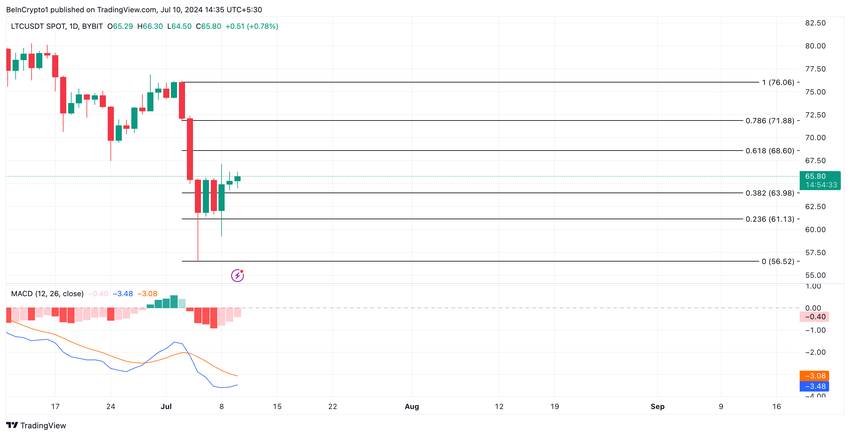 Hvis den tendens fortsætter, kan LTC’s kurs falde til $63.98.