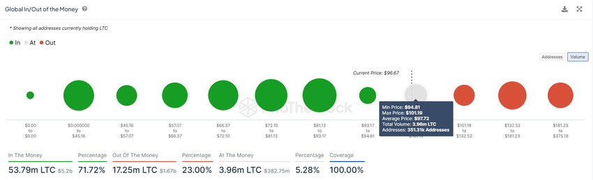 Dette var dog kortvarigt, da kryptovalutaen korrigerede kort tid efter og bragte LTC ned på 95 dollars. Er der nogen chance for, at Litecoin kan klatre op igen?