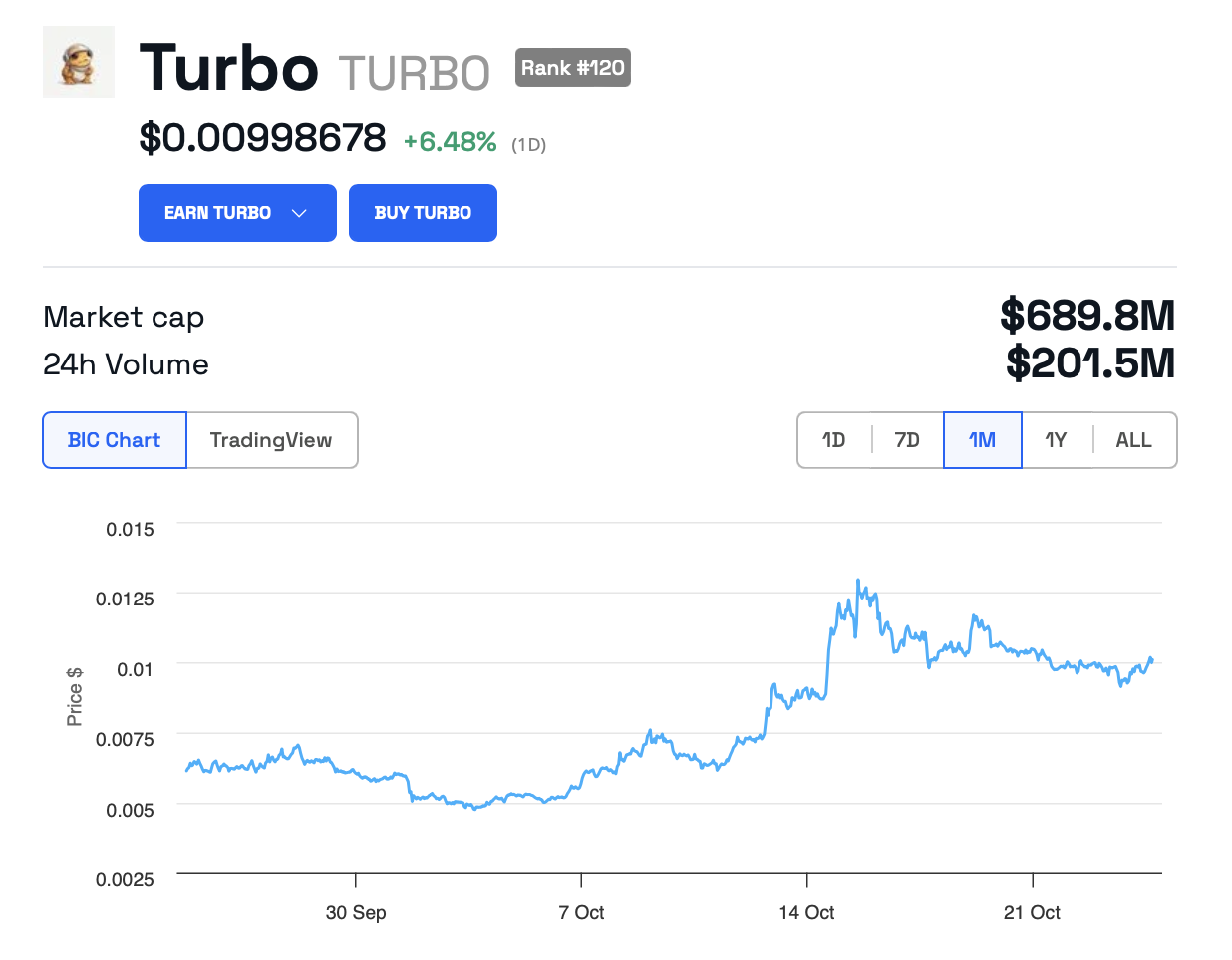 Trods denne stigning er Turbos kurs faldet siden den nåede sit højdepunkt i midten af oktober. Selvom dens værdi spiked efter Coinbases meddelelse, har nedgangen i den seneste uge overskygget disse tidligere gevinster.