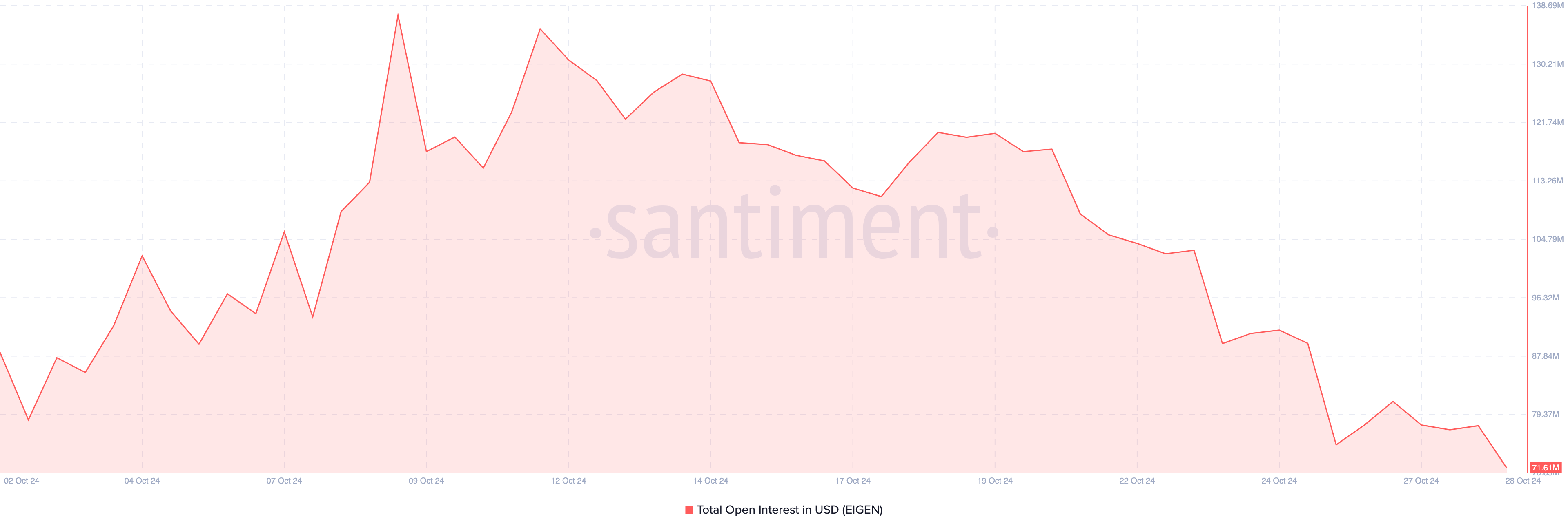 Men EIGENs OI er faldet til det laveste niveau siden lanceringen. Hvad betyder dette for altcoinens værdi?