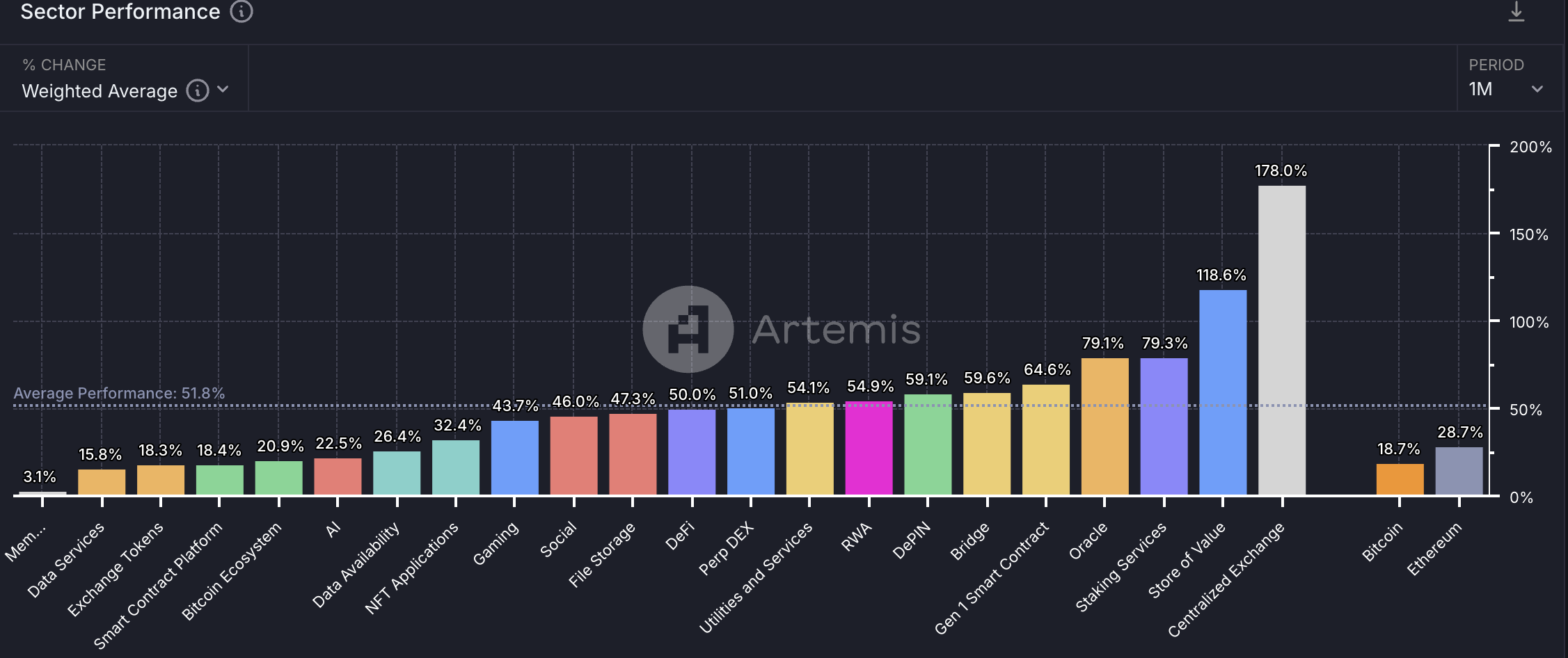 For eksempel opnåede FARTCOIN en kursstigning på 200% tidligere på måneden, mens ældre aktiver som DOGE faldt kraftigt på det tidspunkt. På samme måde var POPCAT en top-performer i november, men den begyndte hurtigt at halte efter markedet. Med andre ord kan disse store succeser distrahere fra andre tab. Hele markedet er dog stille og roligt underpræsterende.
