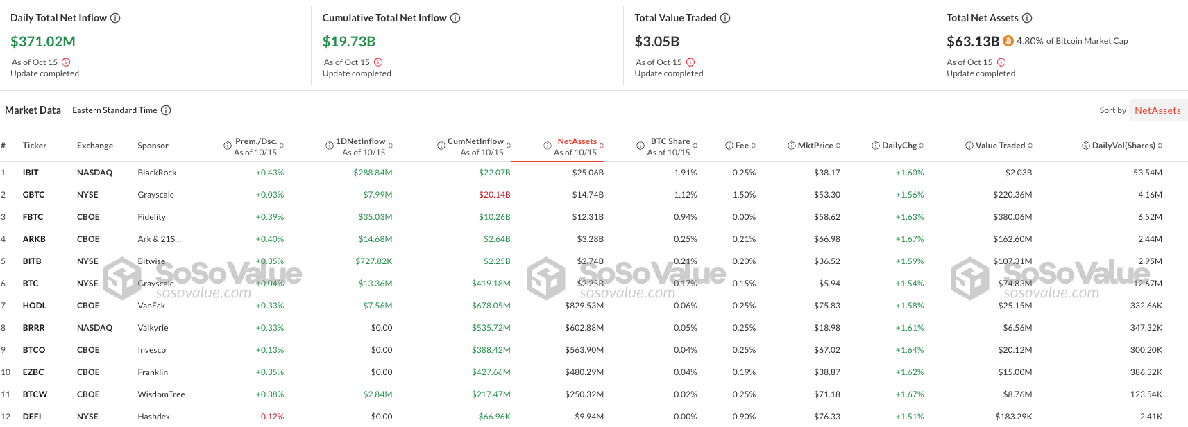 På dagen, hvor Tesla flyttede sin Bitcoin, registrerede spot Bitcoin ETF’er indstrømninger på i alt 371 millioner dollars. Alene BlackRock’s iShares Bitcoin Trust tiltrak 288,84 millioner dollars, hvilket indikerer en stærk investorinteresse.
