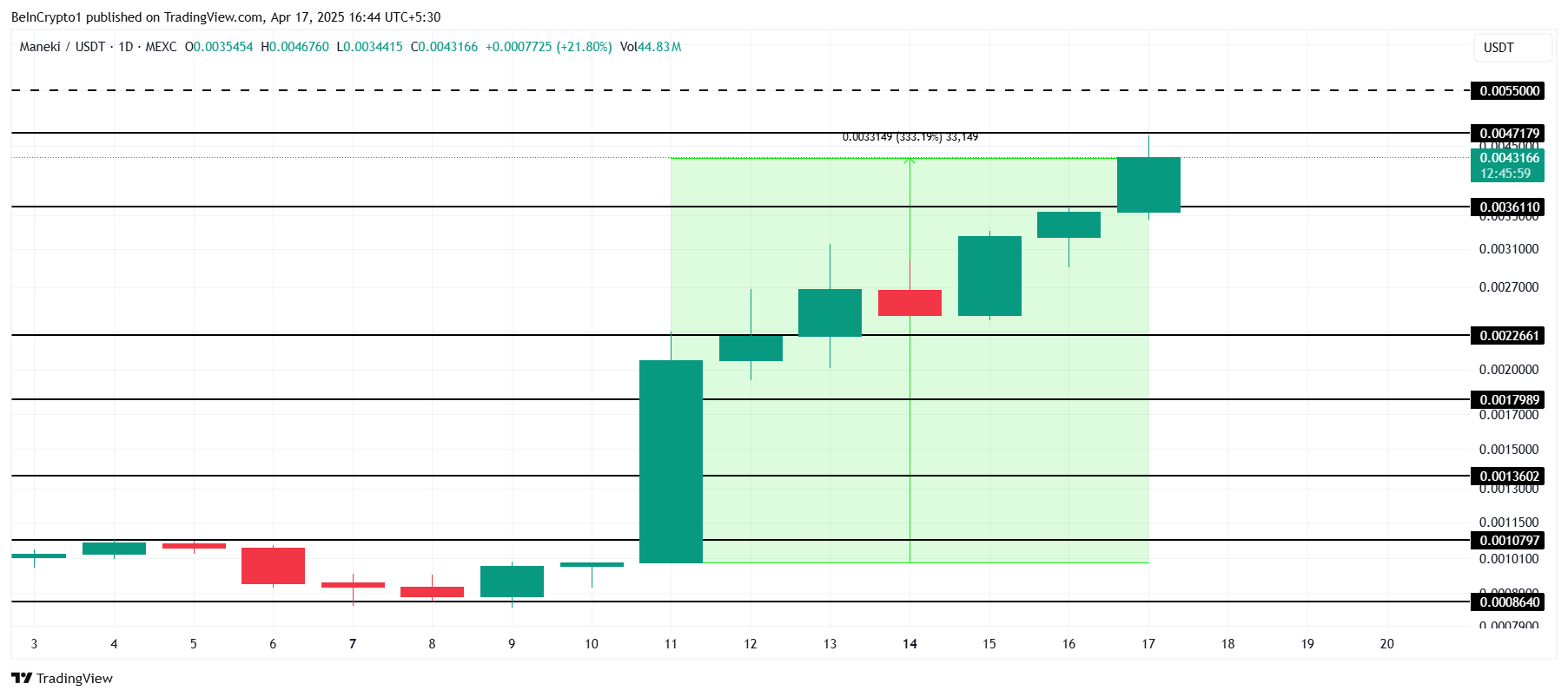 Men hvis kursen ikke formår at bryde $0,0047, kan coinen falde tilbage til $0,0036. At miste denne støtte ville afvise den bullish tese, hvilket forårsager et fald til $0,0022. Investorer skal nøje overvåge kursen for at bestemme det næste potentielle træk for MANEKI.