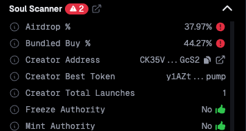 Der er dog områder, der giver anledning til bekymring. For eksempel viser data fra Soul Scanner, at 37,97% af udbuddet blev distribueret via airdrops. I tilfælde af meme coins airdropper udviklere generelt små mængder af udbuddet til mange adresser for at vise en falsk distribution af udbuddet.