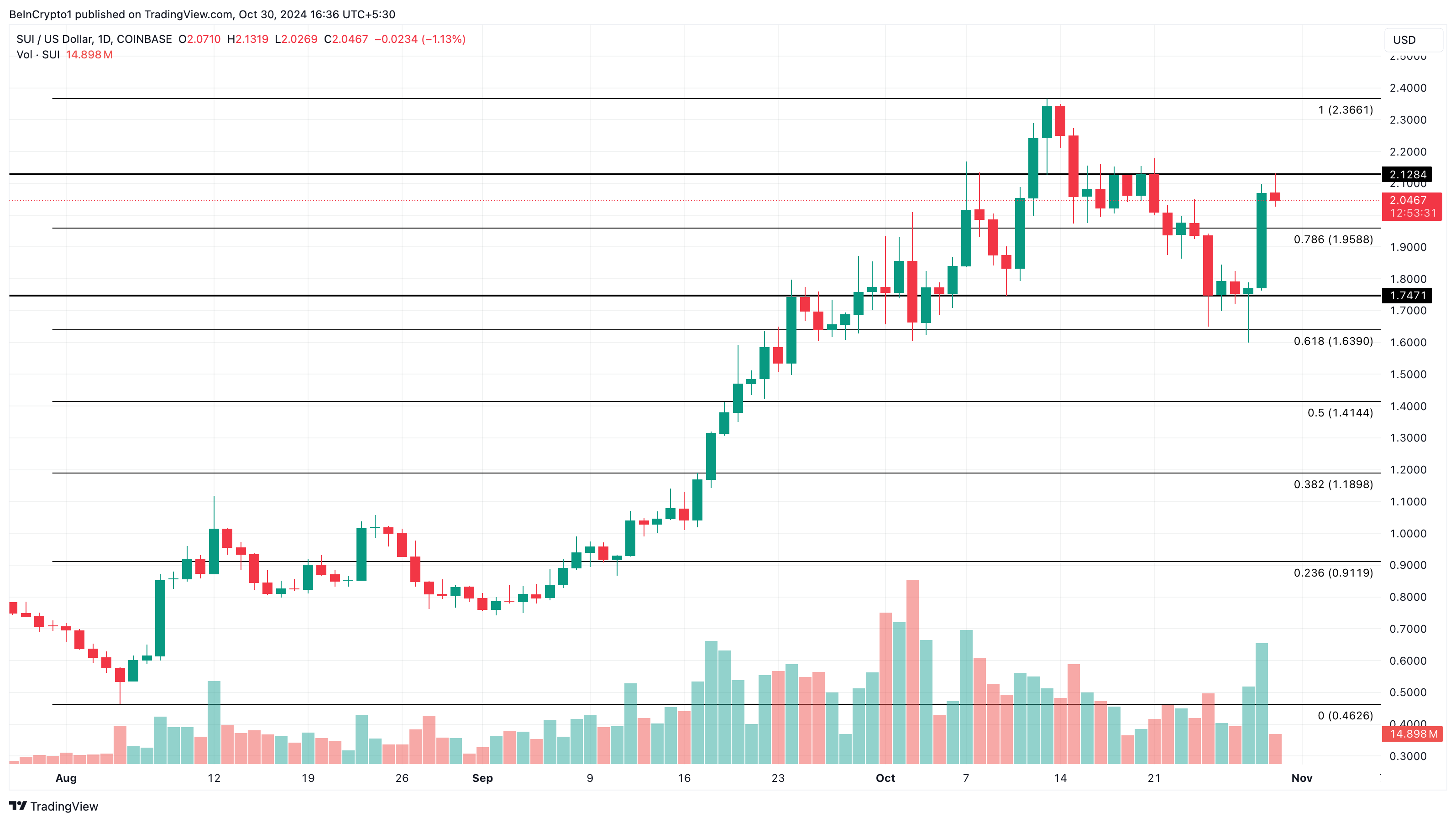Inden for de sidste 24 timer er SUI’s pris steget med 7,40%, og som resultat er altcoinens værdi steget over $2 igen.