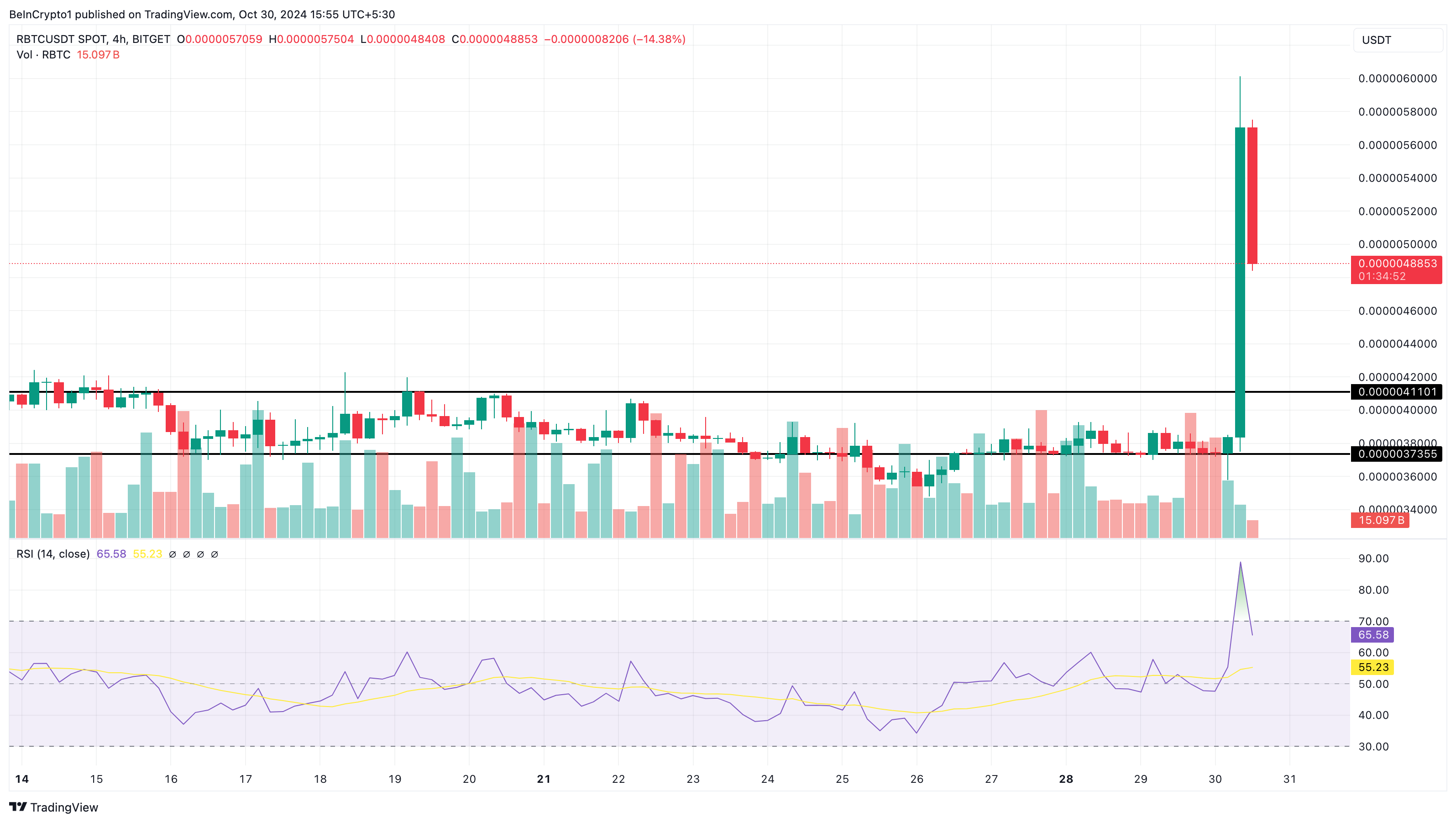 Efter offentliggørelsen steg RBTC’s kurs med 32% i de sidste 24 timer, mens volumen også steg, hvilket indikerer en stigende interesse for altcoinen.