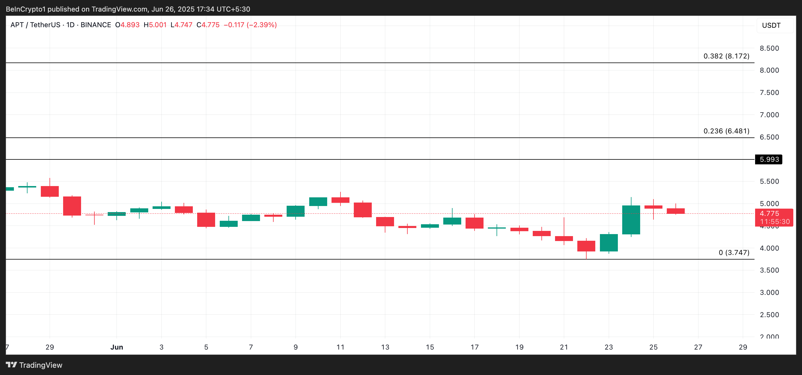 Men hvis salgspres øges, kan APT’s kurs falde til $3.74.