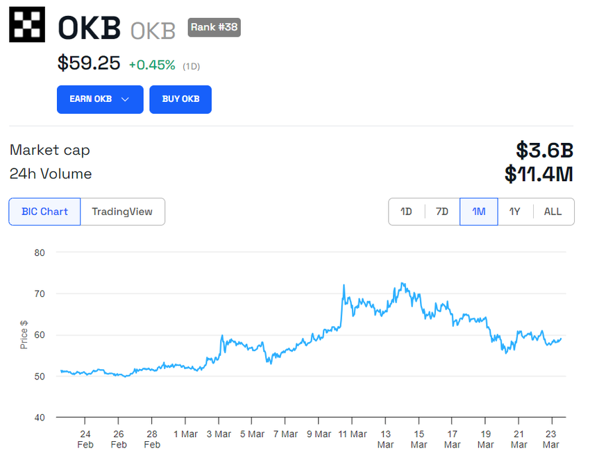 OKB’s pris har været meget volatil i løbet af den seneste uge og er faldet til så lavt som 54 dollars, før den steg til sin nuværende værdi på 57 dollars ved redaktionens slutning, ifølge BeInCrypto-data.