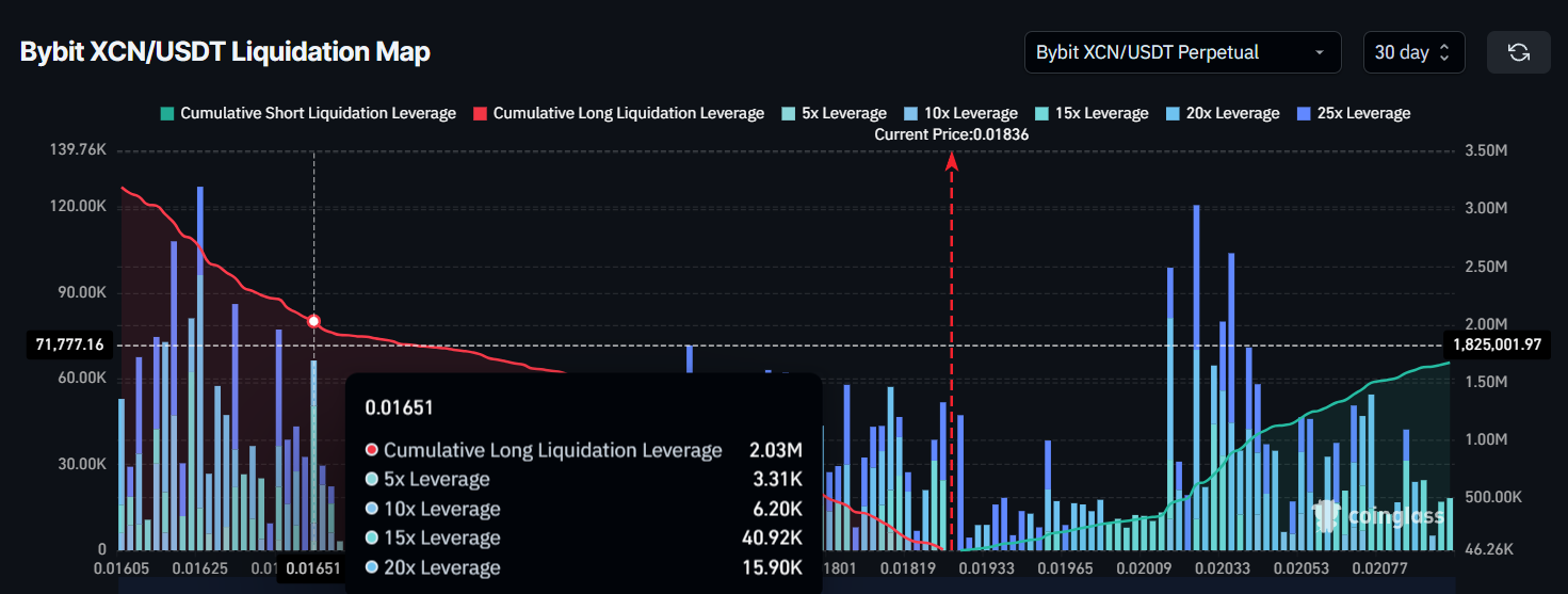 Selvom det måske ikke virker betydeligt i en bredere markedskontekst, kan afviklingen af disse positioner yderligere skifte stemningen mod et mere bearish udsigter for XCN.