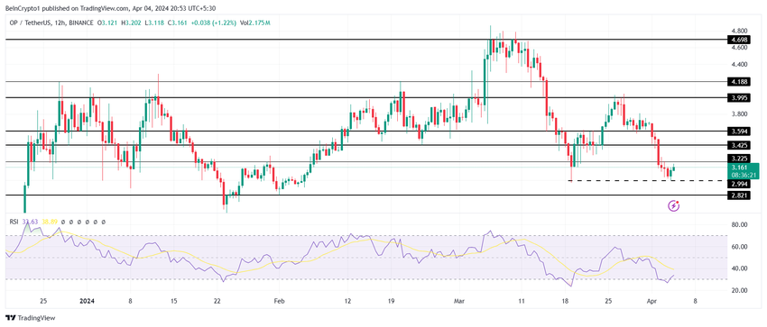 Hvis Optimism får problemer med at bryde igennem modstanden, kan potentialet for profit-taking udløse et fald, der potentielt kan føre prisen under supportniveauet på $3,22 og udfordre de opadgående udsigter.