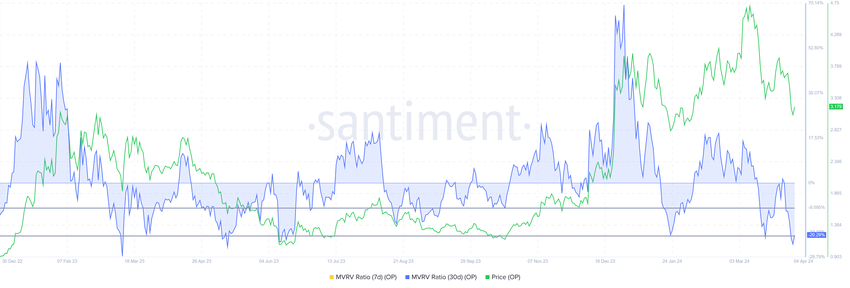 Efter en iøjnefaldende korrektion på linje med de bredere markedstendenser, stiger Optimisms pris igen fra supportniveauet på $3,00. Faldet reducerede markedsværdien, som det fremgår af forholdet mellem markedsværdi og realiseret værdi (MVRV).