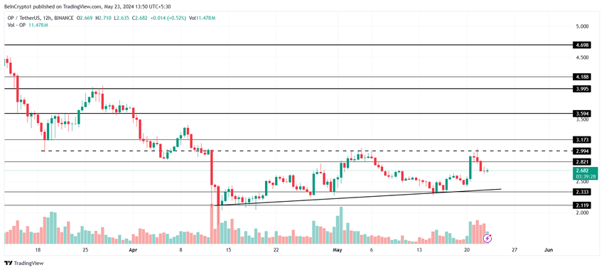 Optimismens pris har været i en opadgående tendens i den sidste halvanden måned, hvilket har bragt altcoin til $ 2,68 i skrivende stund. Men i denne periode har OP forsøgt at bryde modstanden på 2,99 $ to gange, hvilket mislykkedes begge gange.