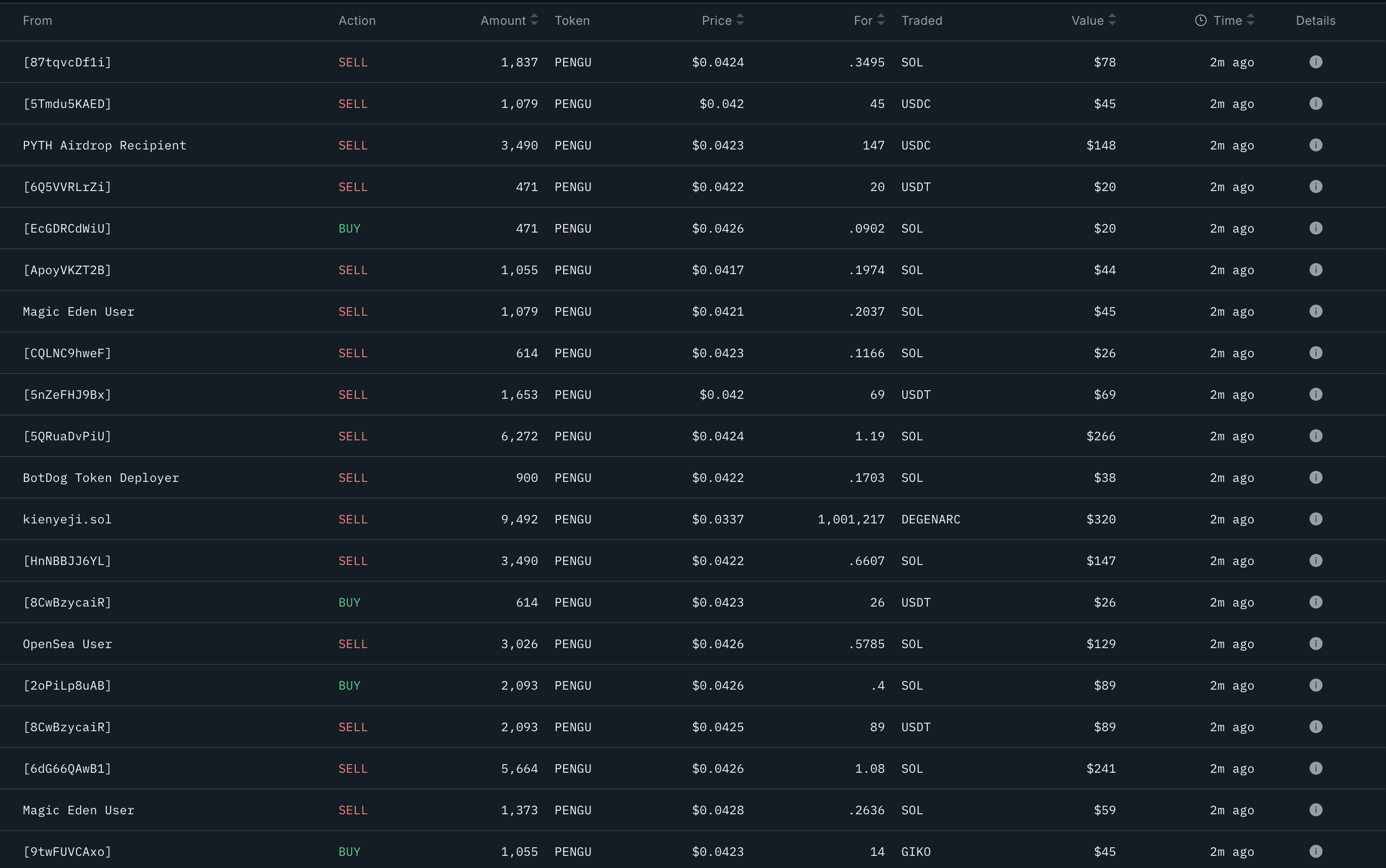 I mellemtiden afslørede Lookonchain, at nogle handlende tjente på PENGU-tokenets kurs. En handlende købte for eksempel tokens for 5,36 millioner dollars og solgte dem for 13,72 millioner dollars inden for blot 20 minutter.