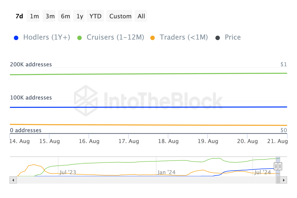 Normalt, når MCA falder, signalerer det, at investorer flytter deres aktiver ud af langtidsopbevaring og ind i kolde wallets, demonstrerer tillid til coinens langsigtede værdi.