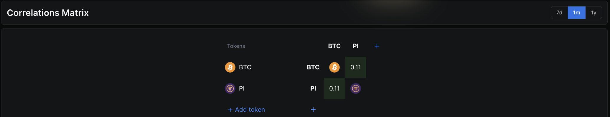En årsag til det svage PISI er Pi’s lave korrelation med Bitcoin. Én-måneds korrelationstabellen viser et forhold på kun 0,11 mellem BTC og PI. Pi Network bevæger sig hovedsageligt uafhængigt af Bitcoin, så Pi drager ikke fordel af et bitcoin-ledet momentum. I stedet følger Pi tættere med altcoin-markedet. Hvis en rotation i altcoins sætter ind, kan Pi blive trukket med, men indtil da begrænser uafhængigheden potentialet til stigning.