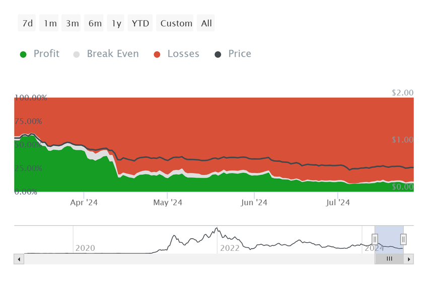 MATIC kurs står over for konsekvenserne af den seneste mangel på vækst. I øjeblikket oplever kun lidt over 8% af alle MATIC-indehavere profit, mens flertallet stadig venter på gevinster.