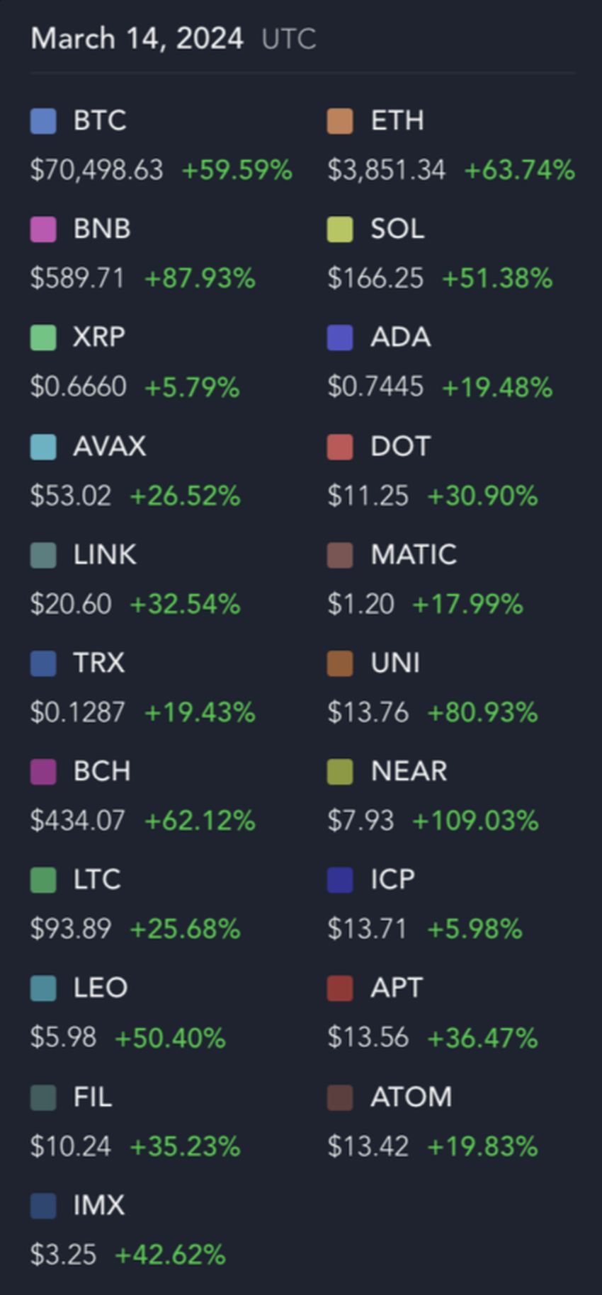 Hvis man sammenligner år-til-dato-væksten (YTD) for nogle af de største kryptovalutaer på markedet i dag – eksklusive stablecoins og memecoins, blev MATIC overgået af 18 ud af 20. Den overgik kun YTD-gevinsterne for XRP og ICP.