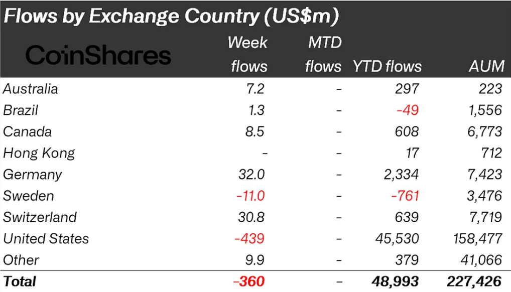 Mens amerikanske investorer trak sig ud, registrerede Tyskland og Schweiz beskedne indstrømninger på $32 millioner og $30,8 millioner, hvilket viste vedvarende regional tro. Desuden bidrog det manglende større amerikanske økonomiske dataudgivelser til markedets usikkerhed gennem ugen.