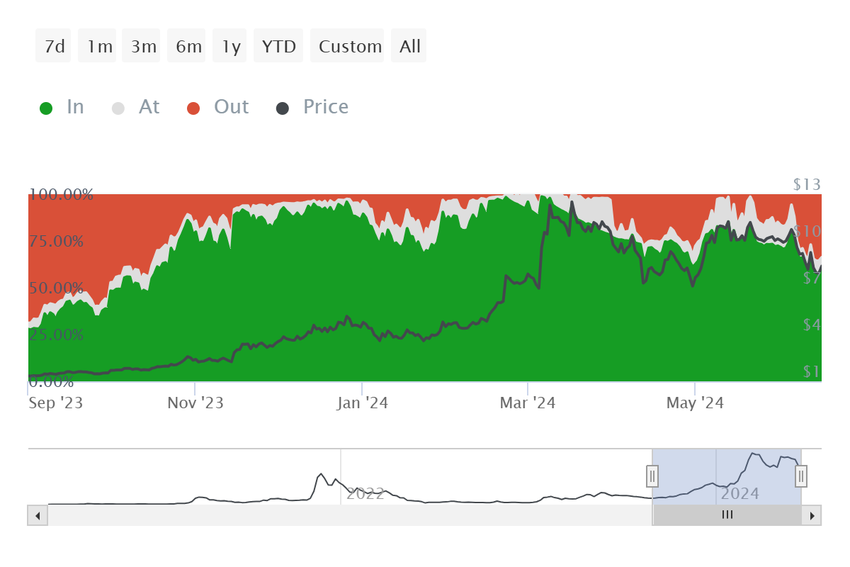 Dette fald markerer første gang siden oktober 2023, at kun 60% af investorerne ser gevinster. Dette understreger en betydelig nedgang i markedsstemningen og rentabiliteten for RNDR-indehavere.