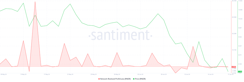 Desuden signalerer spidser i netværkets realiserede fortjeneste / tabsindikator bearish tendenser for Renders pris. Dette tyder på, at de nuværende markedsforhold fortsat kan lægge et nedadgående pres på altcoinen.