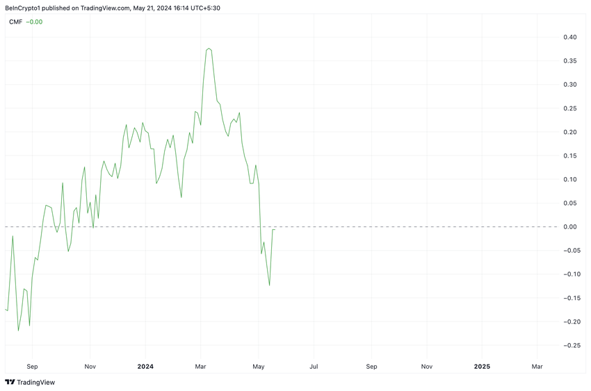 Værdien af RNDR’s Chaikin Money Flow (CMF) var også -0,01 i skrivende stund. Denne indikator måler pengestrømmen ind og ud af RNDR-markedet.
