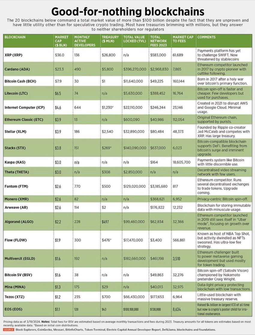 Disse blockchains, som kaldes “good-for-nothing”, handles i høj grad på spekulation, snarere end på funktionel efterspørgsel, hvilket signalerer en spekulativ boble, snarere end et teknologidrevet marked.
