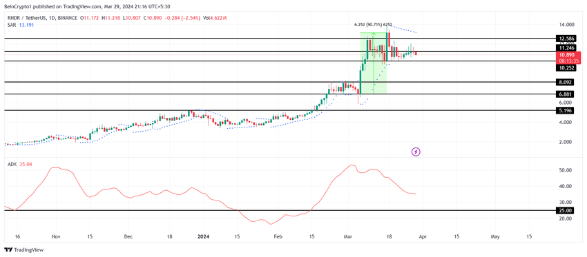 Render-prishandel under $ 11 kunne ikke bryde modstanden markeret ved $ 11.24, hvilket resulterede i en vis tilbagetrækning i prisen. Men det så ikke ud til at afskrække RNDR-indehavere, der har været aktivt bullish over for altcoin.