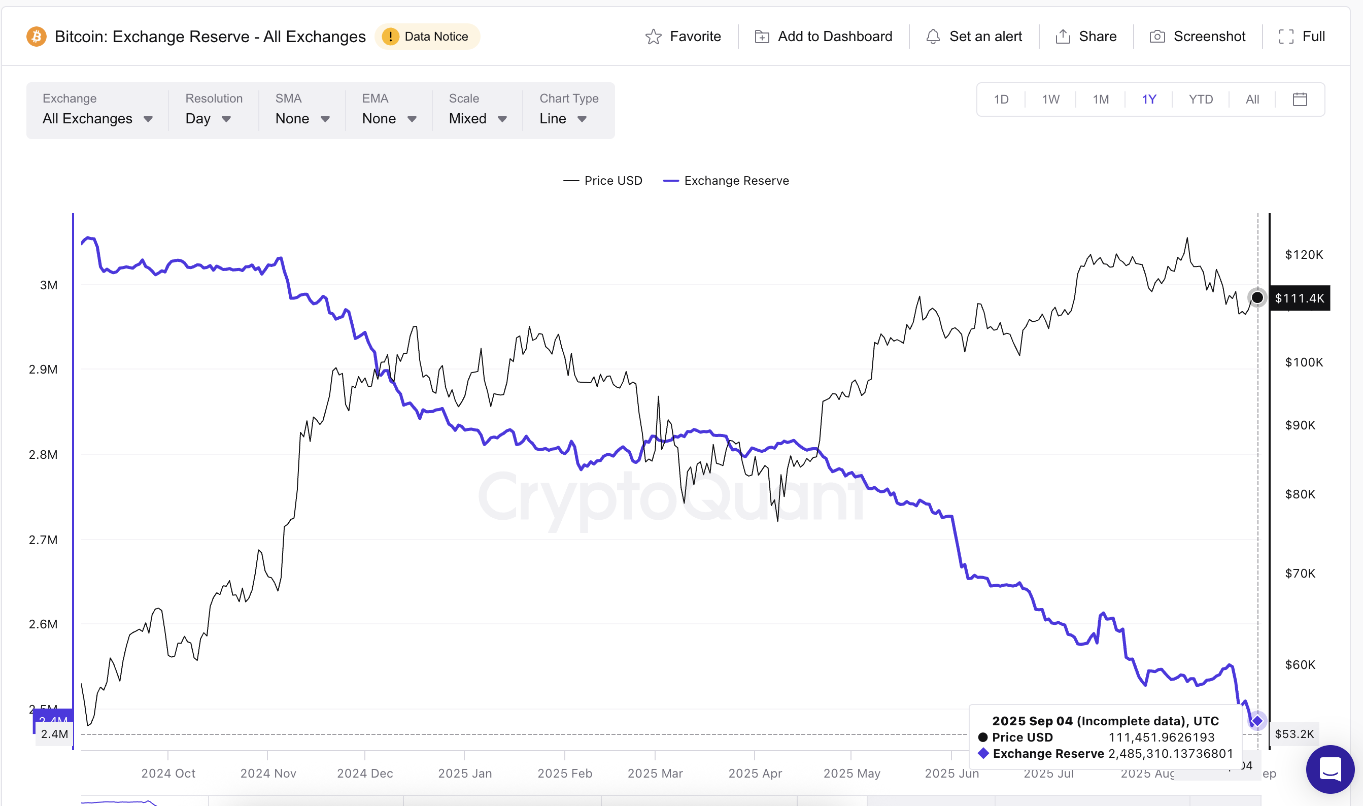 Med lavere børsreserver er denne risiko mindre skadelig end i tidligere krypto-septembre, hvilket er som en sølvkant trods bekymringerne om udtrækningsadresser.