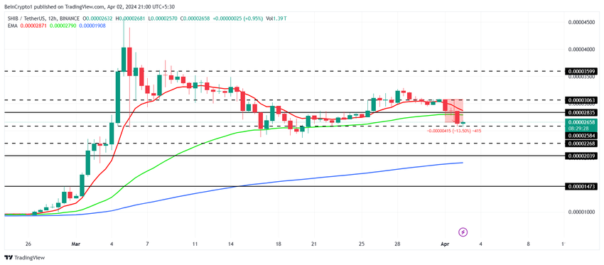 SHIB vil sandsynligvis ryge ned for at teste supportniveauet på $0,00002268. I betragtning af de førnævnte forhold, kan faldet strække sig ud over netop dette afgørende supportniveau.