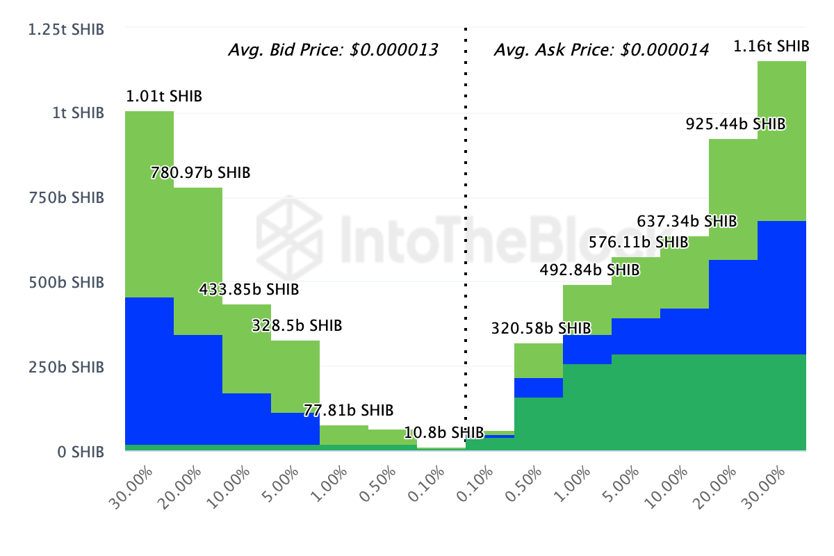 Data fra IntoTheBlock viser, at kortsigtede Shiba Inu (SHIB) ejere forbereder sig på at sælge over 4 billioner tokens. Ifølge Exchange Onchain Market Depth overstiger dette antal antallet af tokens klar til at blive købt på de største 20 børser.