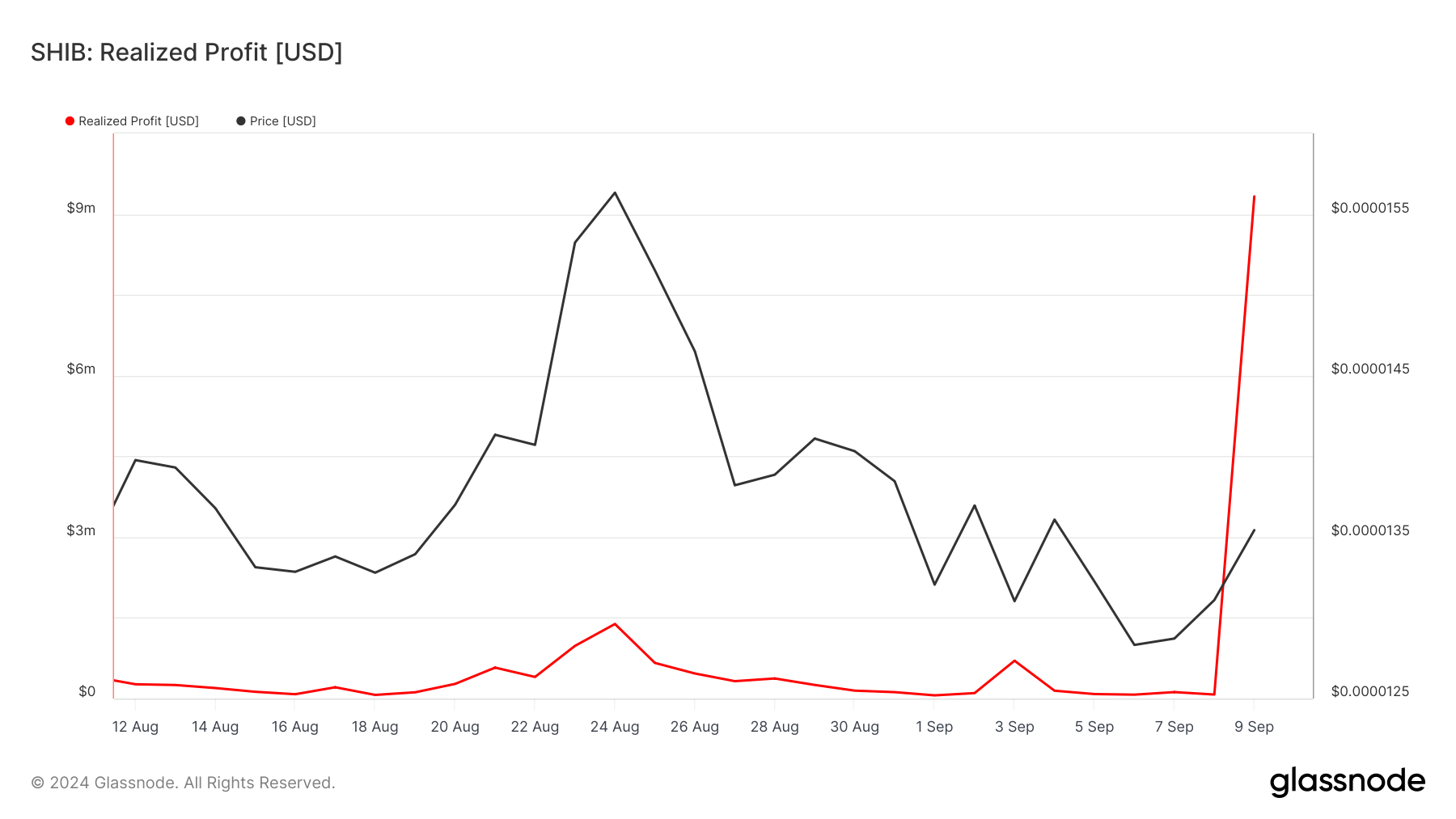Shiba Inus seneste kursstigninger har drevet markedsdeltagere til at låse gevinster ind, som ikke er set længe. Den 6. september var SHIBs kurs $0.000012.