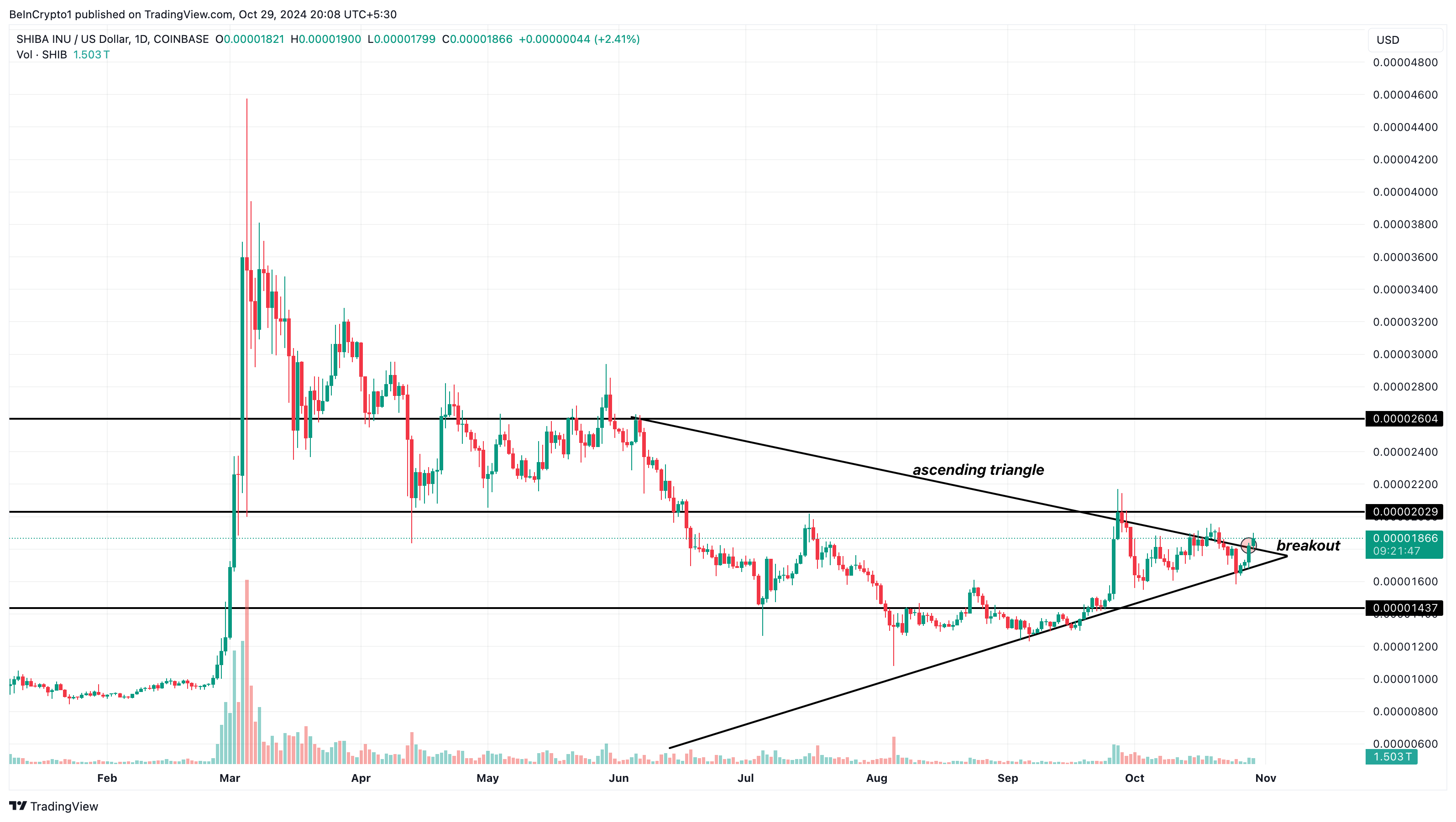 Derfor signalerer dette udbrud ofte potentialet for en fortsættelse i udbrudsretningen, hvilket antyder, at SHIB kan se yderligere opadgående bevægelse.