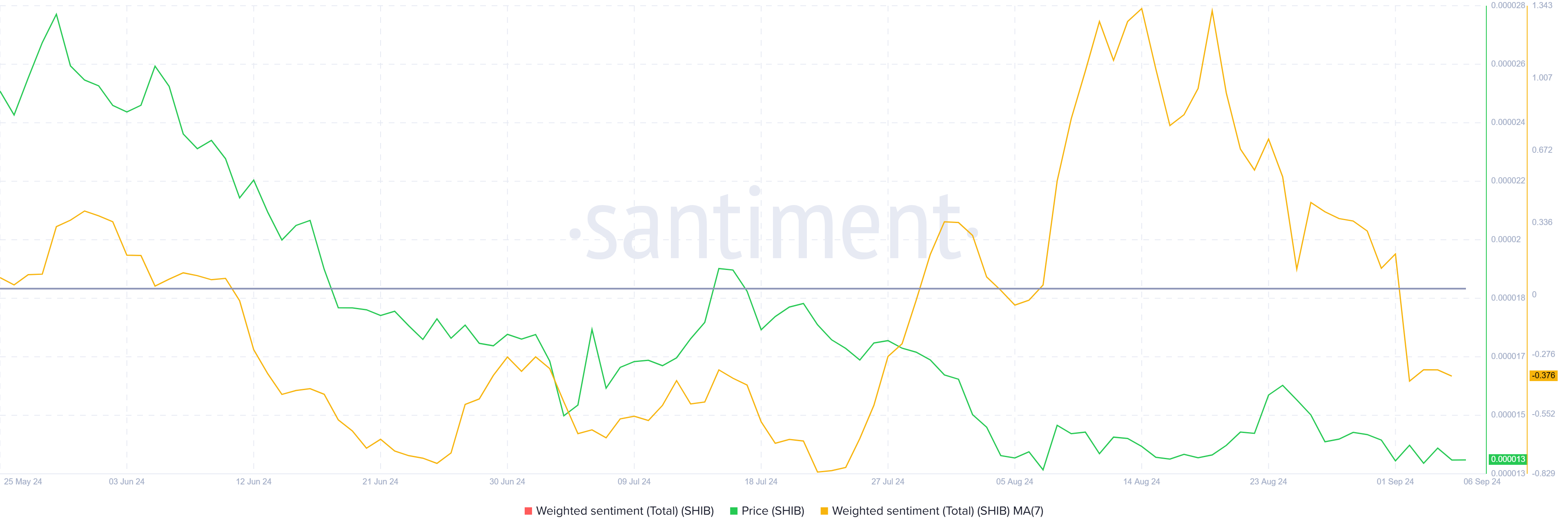 Dette er vigtigt, da Shiba Inus overordnede makromomentum viser tegn på bearishness. Den vægtede stemning blandt SHIB-holdere er blevet negativ i løbet af den sidste uge på grund af manglen på prisvækst. Investorerne begynder at miste tilliden, og dette kan føre til øget bearish pres.