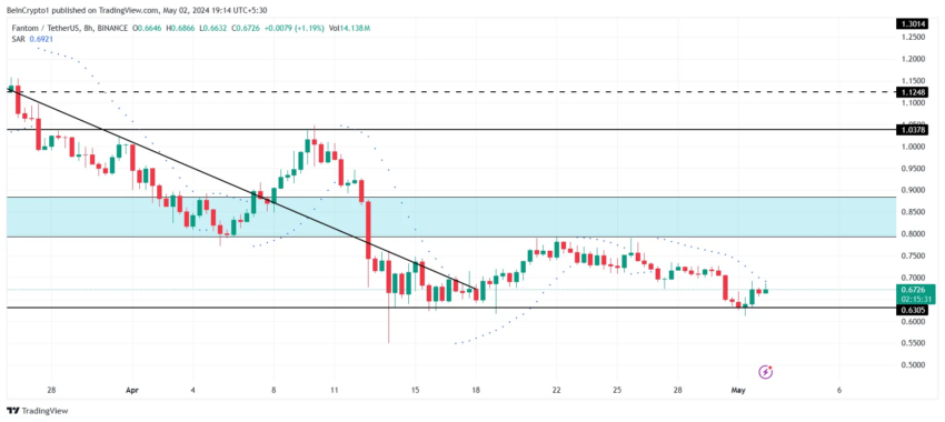 Fantomstår over for modstand, da den i øjeblikket handler omkring $ 0,71. Historiske data viser, at intervallet 0,79 til 0,82 USD udgør en robust modstandsblok, der er udfordrende at bryde.