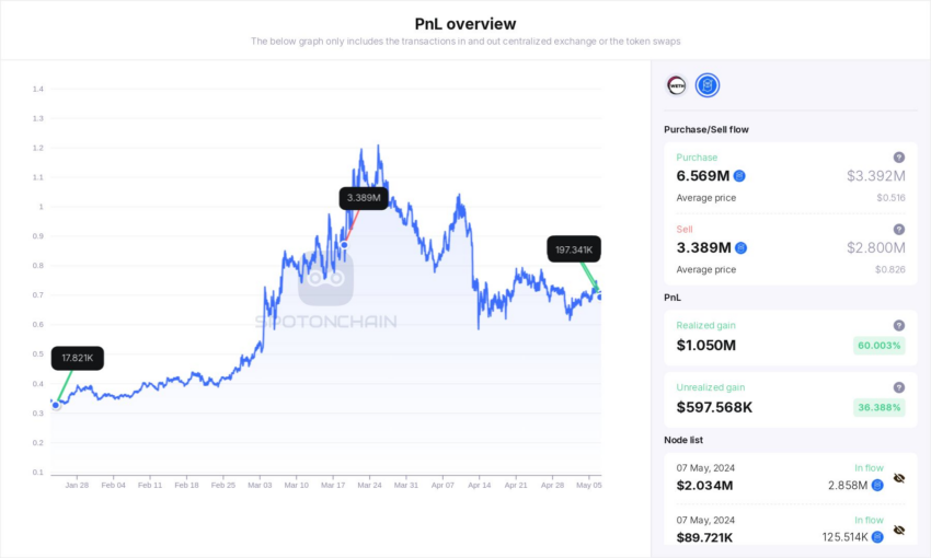 Ifølge blockchain-analyseplatformen Spot on Chain følger denne strategiske akkumulering af FTM af den erhvervsdrivende en tidligere vellykket handel, hvor han opnåede en fortjeneste på 1,67 millioner dollars, en bemærkelsesværdig gevinst på 148%. Den 24. januar 2024 købte den erhvervsdrivende oprindeligt 3,389 millioner FTM for 1,13 millioner dollars og solgte alle tokens den 19. marts 2024 for 2,8 millioner dollars.