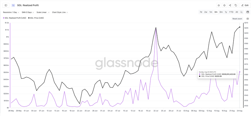 Solana-kursen steg til $213 den 25. august, men kunne ikke holde udbruddet. Tokenet er siden faldet med 3,6% til at handle omkring $200.