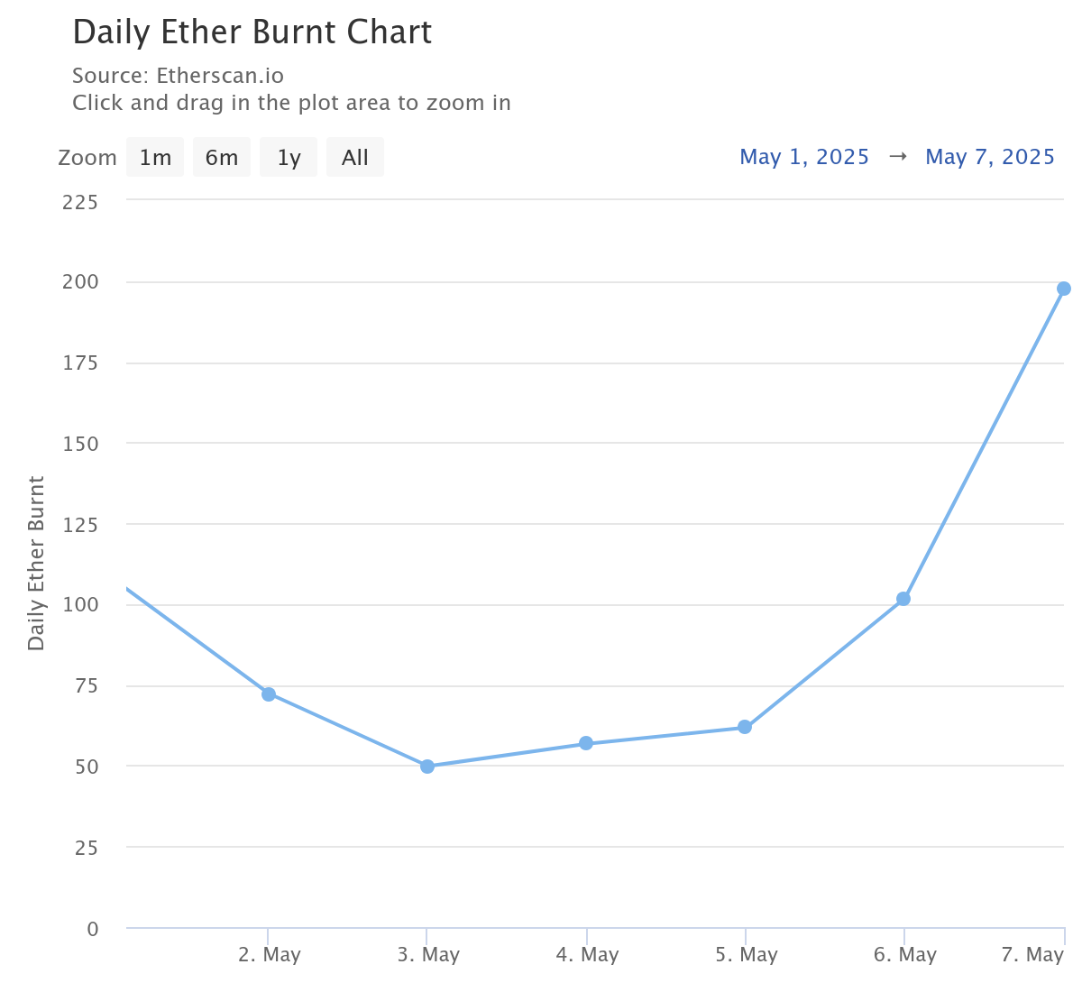 Ifølge Ultrasoundmoney er ETH’s cirkulerende udbud faldet siden Ethereums Pectra-opgradering blev implementeret i onsdags. I øjeblikket står det på et 18-dages lavpunkt på 120,69 millioner ETH.