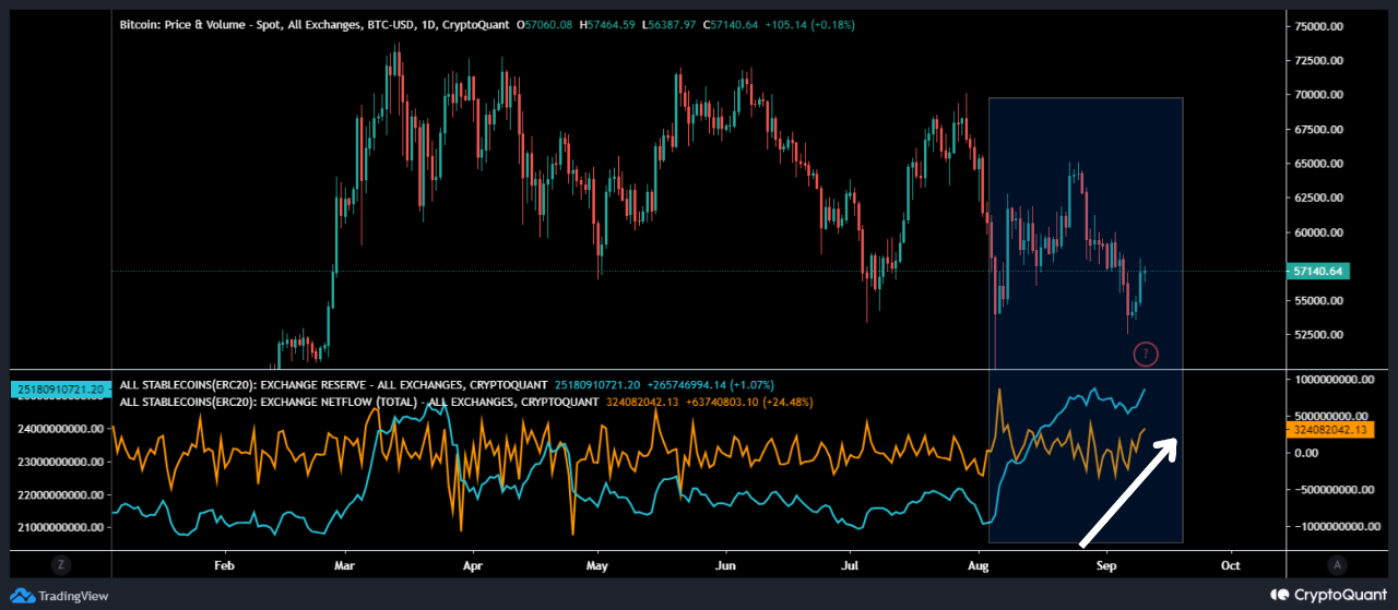 Analytikere ser nu det voksende stablecoin-udbud som et positivt tegn. Tarekonchain, en analytiker hos CryptoQuant, mener, at det antyder at investorerne forbereder sig på at foretage køb.
