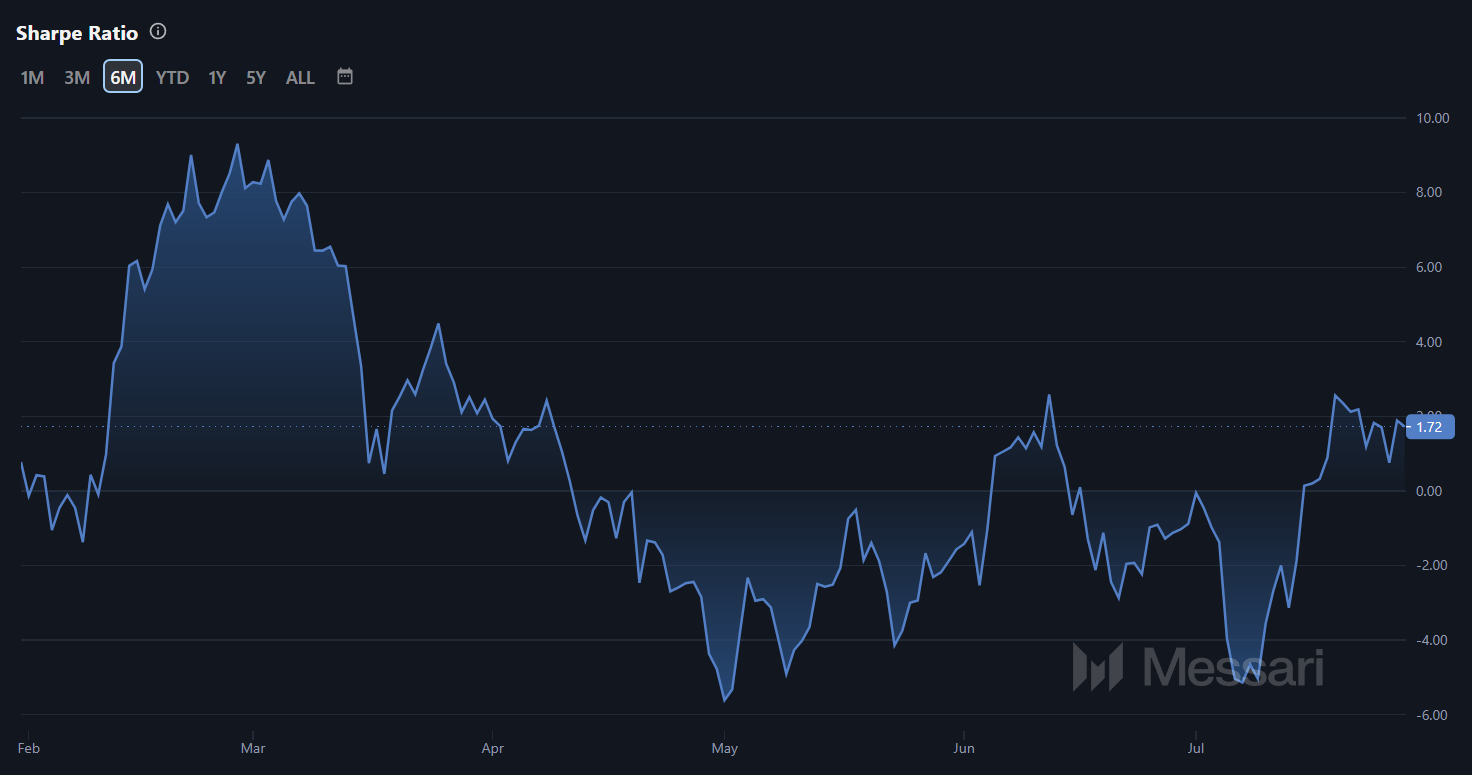 Sharpe Ratio indikerer, at STX i øjeblikket er et godt valg at tilføje til porteføljen. Denne måling, som måler risikojusterede afkast, antyder, at aktivet har præsteret godt i forhold til sin volatilitet.