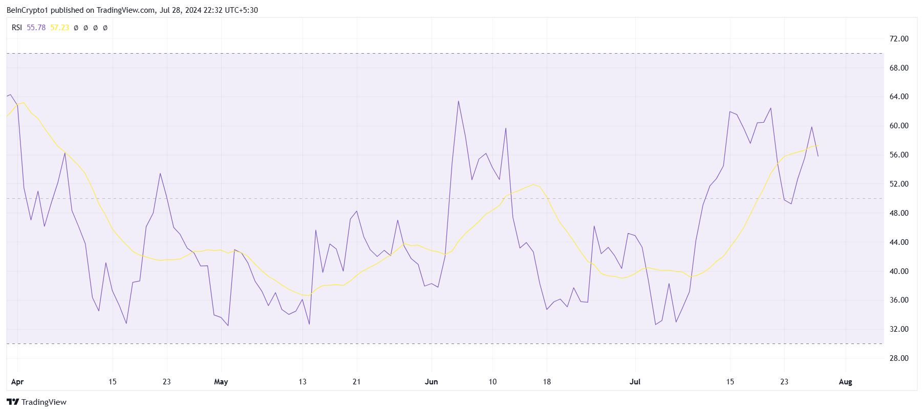En anden vigtig indikator er Relative Strength Index (RSI), som stadig er i den positive zone. Dette er et bullish signal, der antyder, at STX stadig har noget opadgående momentum.