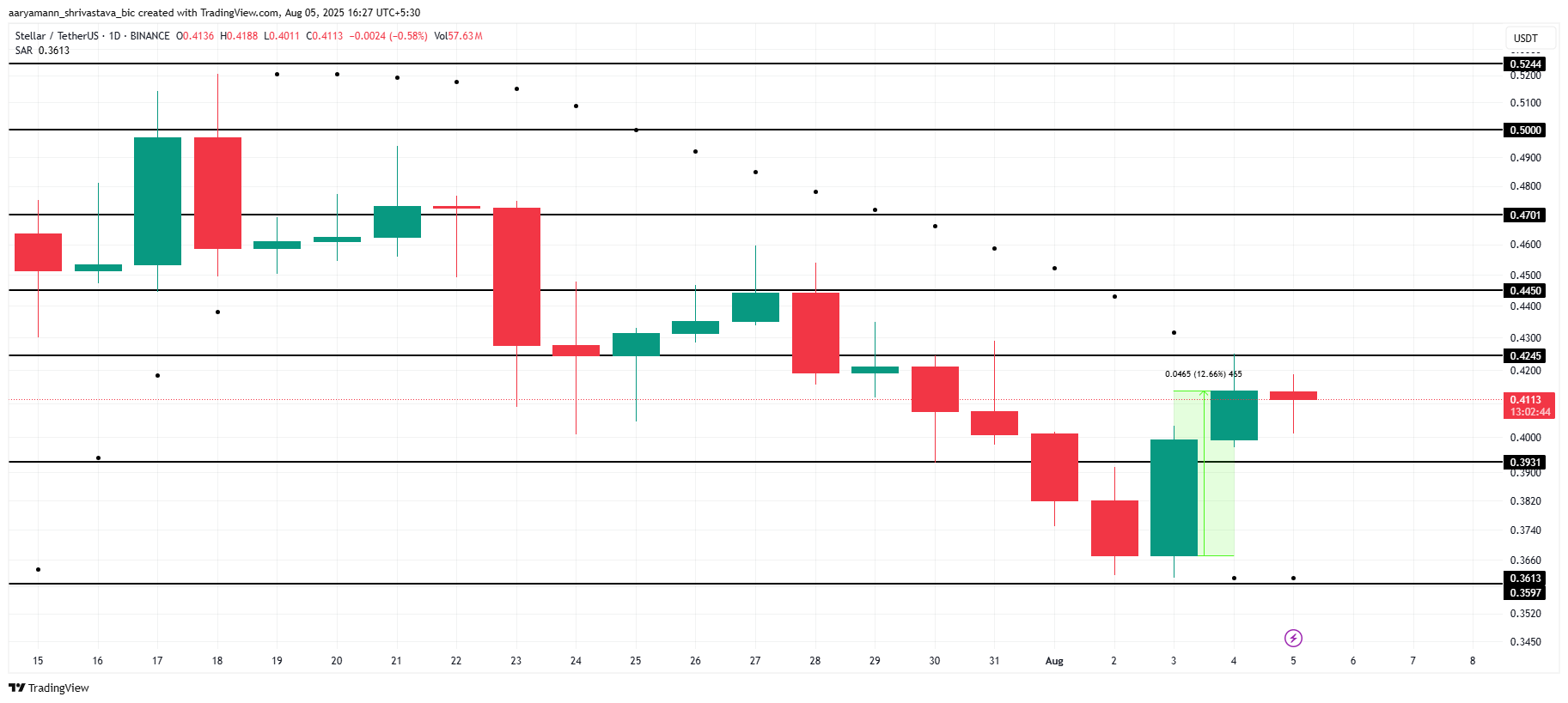 Stellars kursudvikling har vist tegn på opsving efter en to-ugers nedadgående trend, da altcoinen oplevede et fald i værdi.