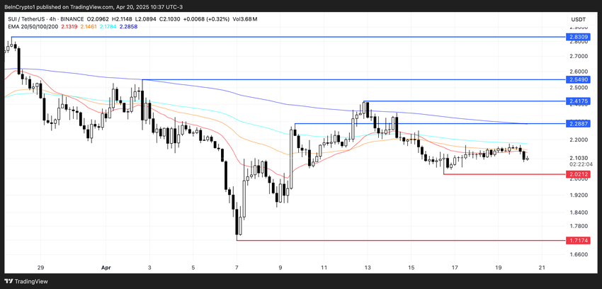 Men en bullish vending kan sende SUI mod modstanden ved $2,28. Et udbrud der åbner døren til $2,41, $2,54, og potentielt $2,83 hvis opsvinget får styrke.