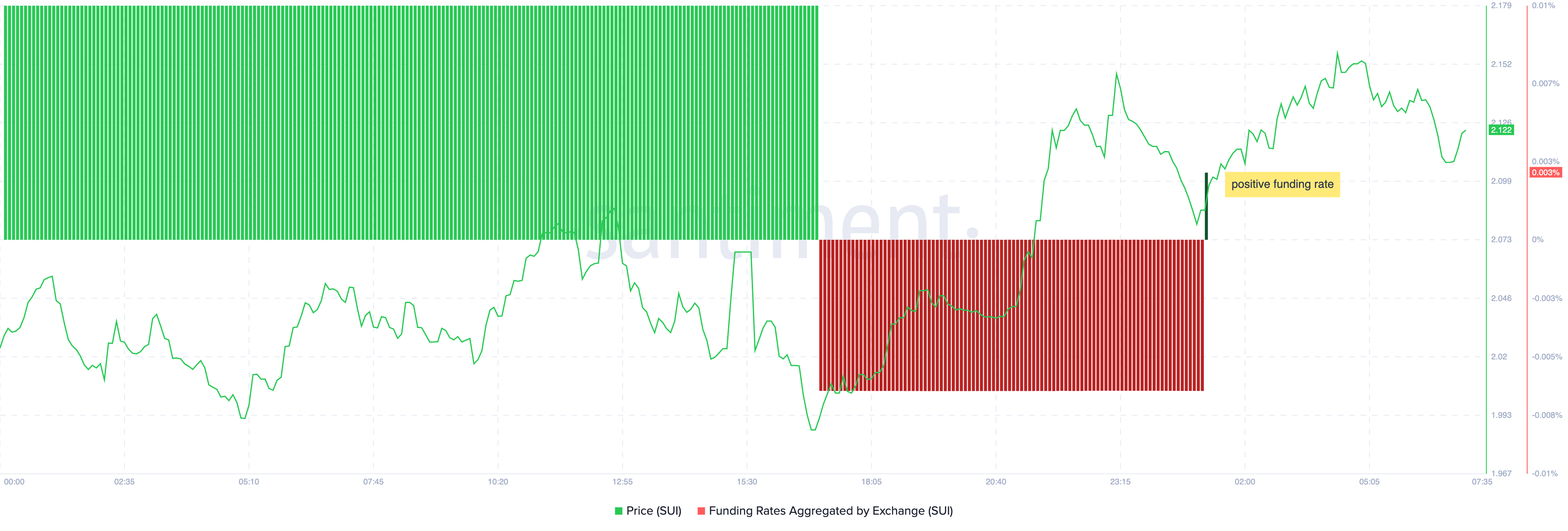 På den anden side indikerer en negativ Funding Rate en pessimistisk stemning, da korte positioner dominerer, og handlende betaler longs for at holde deres positioner. I øjeblikket er Funding Rate vendt tilbage til positivt territorium, hvilket indikerer, at handlende har bevæget sig forbi FUD og nu forventer et markant opsving for Sui.