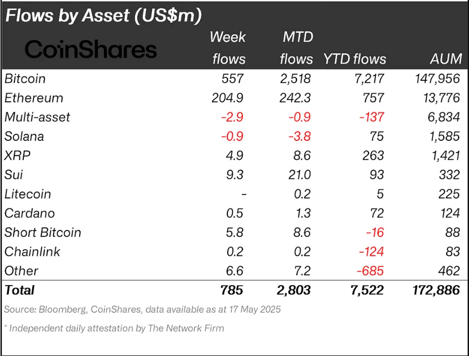 Kursen på SUI har for nylig oplevet en markant stigning, og har overgået XRP i vækst og efterspørgsel. Men det er ikke kun kursudviklingen, der er bemærkelsesværdig. I maj har SUI tiltrukket sig opmærksomhed fra institutionelle investorer, hvilket markerer et skift i efterspørgslen, der kan få langsigtede konsekvenser for kryptomarkedet.