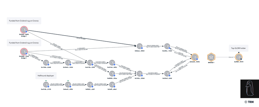 Derudover strækker syndikatets forbindelser sig til Glori Finance, en udlånsprotokol på tværs af kæden, der er etableret på Arbitrum. Denne protokol har digitale aktiver til en værdi af ca. 1,4 millioner dollars.