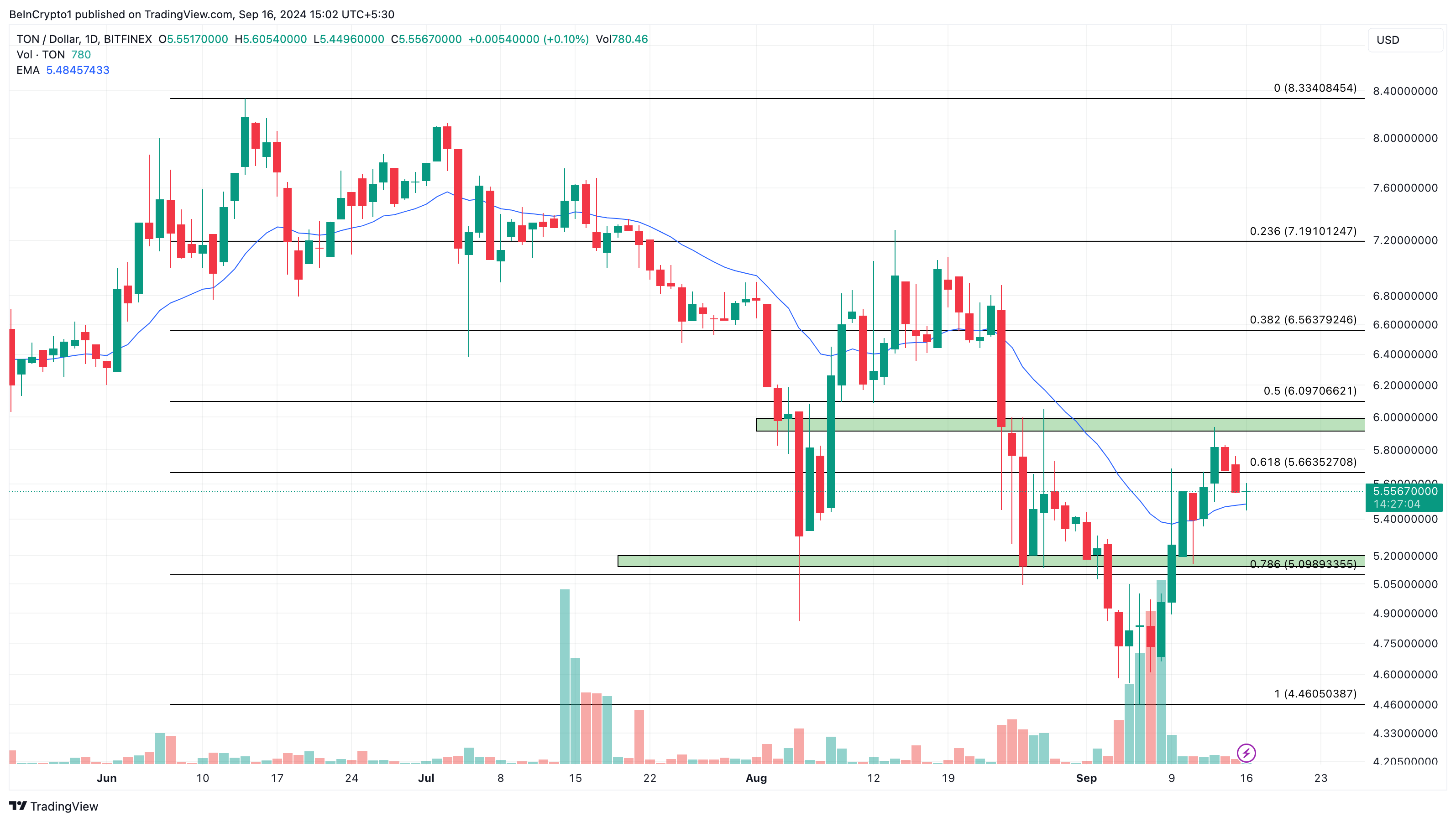 I øjeblikket står Toncoin over for modstand ved 6 dollars, en nøgleforsyningszone. Men hvis efterspørgslen fortsætter med at vokse, kan TON overgå dette niveau, potentielt rally til 8,32 dollars inden fjerde kvartal i år.
