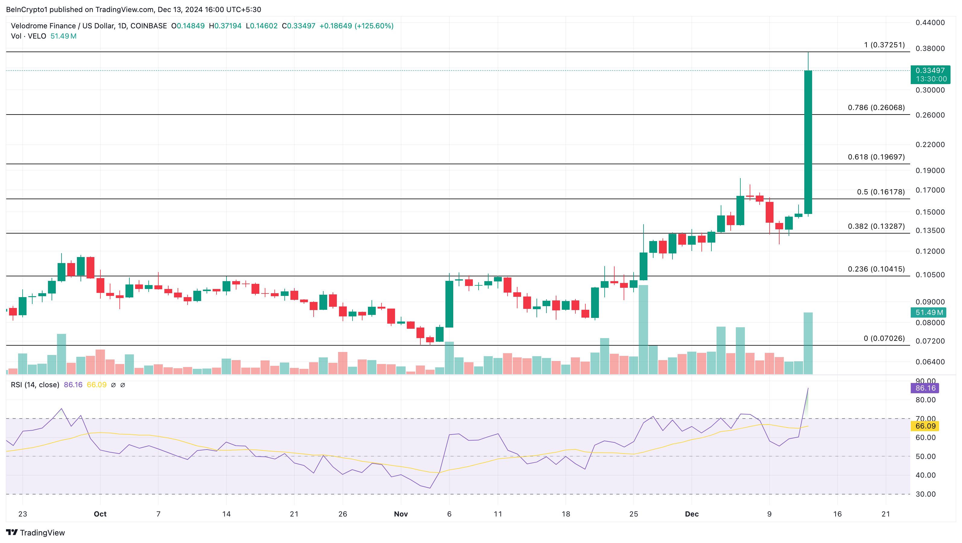 Udover det er Relative Strength Index (RSI) steget, hvilket indikerer bullish momentum omkring kryptovalutaen. Hvis købspresset fortsætter med at stige, kan VELO stige så højt som $0.44. Men hvis altcoin-indehaverne beslutter at tage profit fra stigningen, kan trenden ændre sig, og dens værdi kan falde.