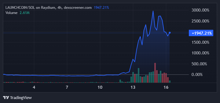 Data på DexScreener bekræfter dette synspunkt og viser let momentum i kursudviklingen. Ikke desto mindre forbliver kursen langt over sin bund, oppe med 1.947% på 4-timers tidsrammen.