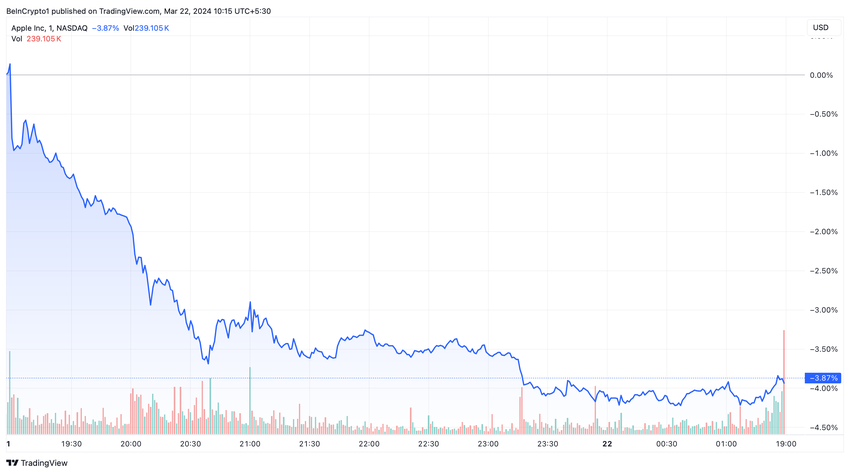 Som et resultat af disse påstande faldt Apples aktiekurs med 3,8%, torsdag. Dette fald er udtryk for investorernes bekymring over potentielle lovgivningsmæssige udfordringer og Apples markedskontrol.