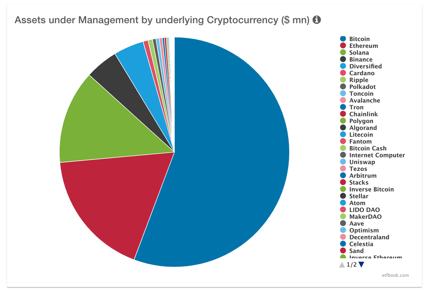 I øjeblikket forvalter 188 Crypto-ETP’er i alt 12.705,34 millioner dollars i aktiver. Bitcoin og Ethereum står for over 73% af de samlede aktiver under forvaltning (AUM) på det nuværende ETP-marked. WisdomTree Physical Bitcoin ETP ligger på andenpladsen blandt de 10 bedste krypto-ETP’er målt på nettostrømme i løbet af de sidste 30 dage, efter 21Shares Bitcoin Core ETP.